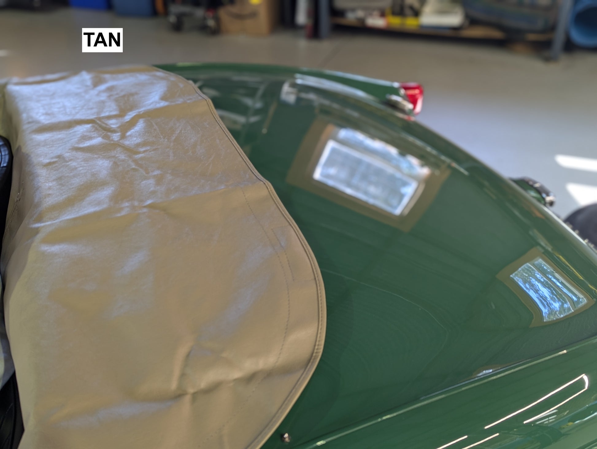 Most Bugeyes are fit with a long tonneau that attaches to the top fasteners in the back. Some are fit with a short tonneau and these have traditionally been hard to find. If you have a row of studs along your back cockpit edge, you will need a short tonneau. Click here to check out our Short Tonneaus. Custom colors are also available, we’ve fit about 100 different tonneaus! Please email Info@bugeyeguy.com for details. Note: all tonneaus must be custom fit to your car. They are sold with the necessary fasteners and you will need to locate and attach them to your new tonneau. Both materials we offer are high-quality tonneaus that will last for many years!