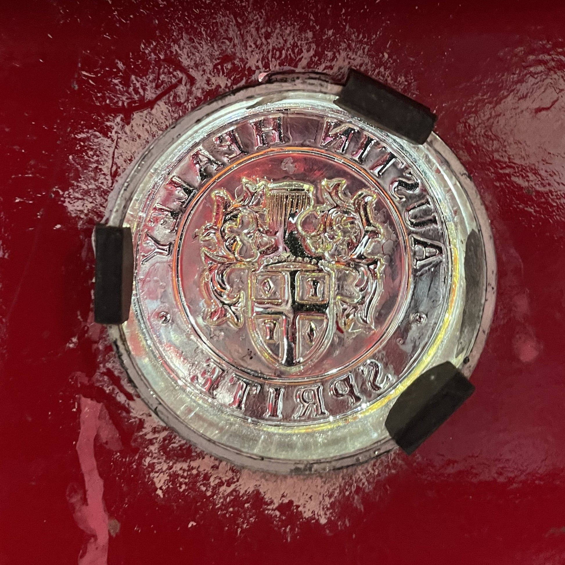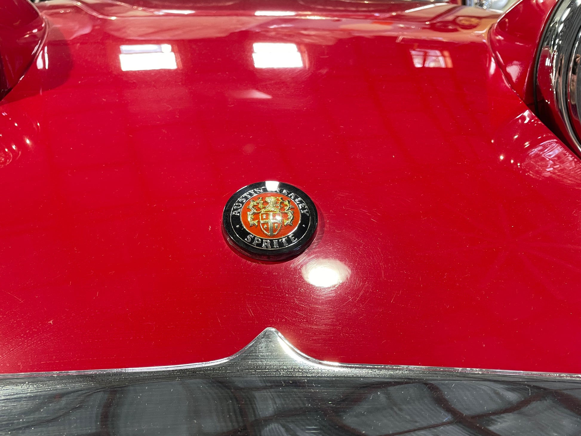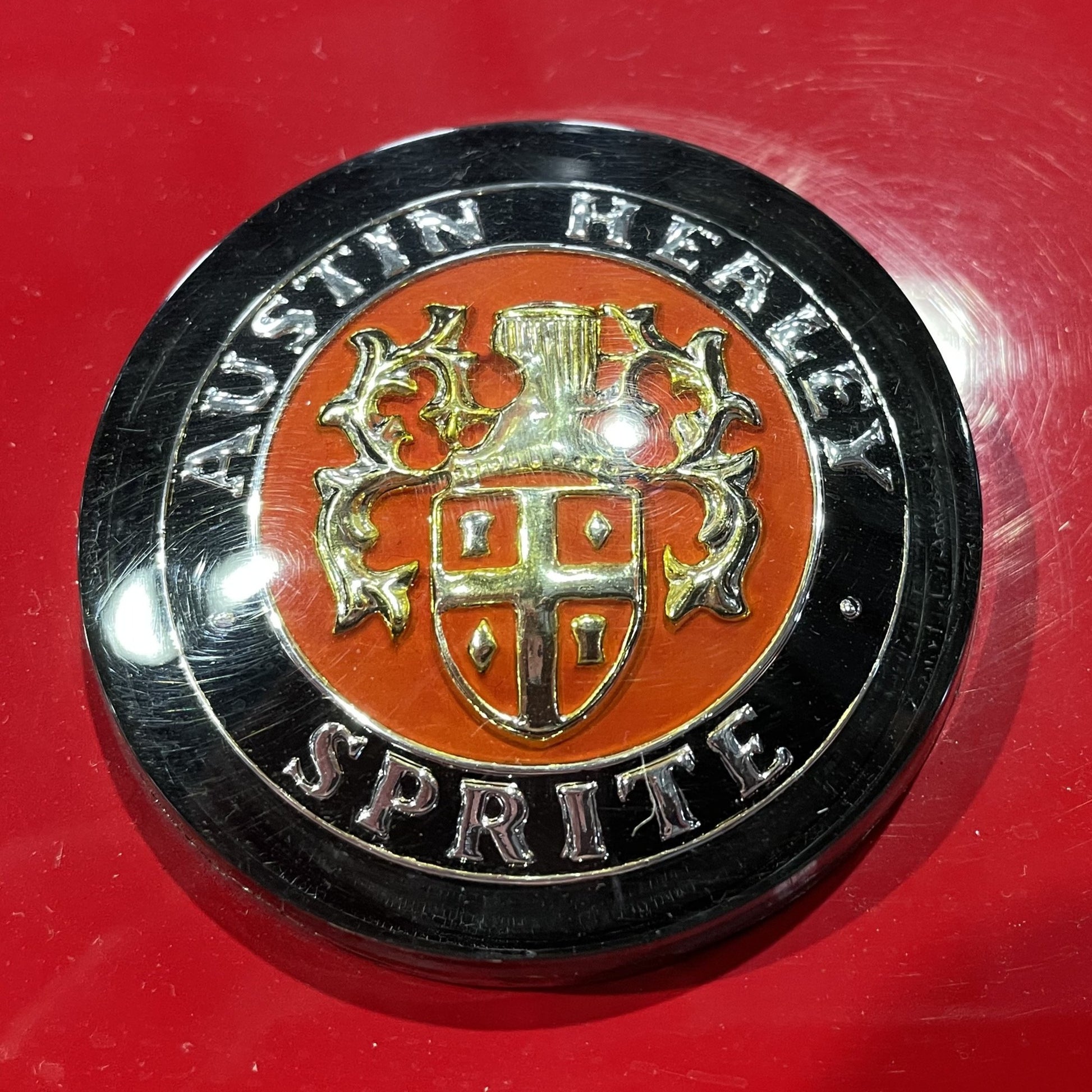 This is a reproduction of the original style bonnet medallion for a MK1 Austin Healey Bugeye Sprite. Is yours chipped or worn? Don't let the beauty of your Frogeye Sprite be compromised by a worn-out emblem. These are faithful reproductions of the original emblem.