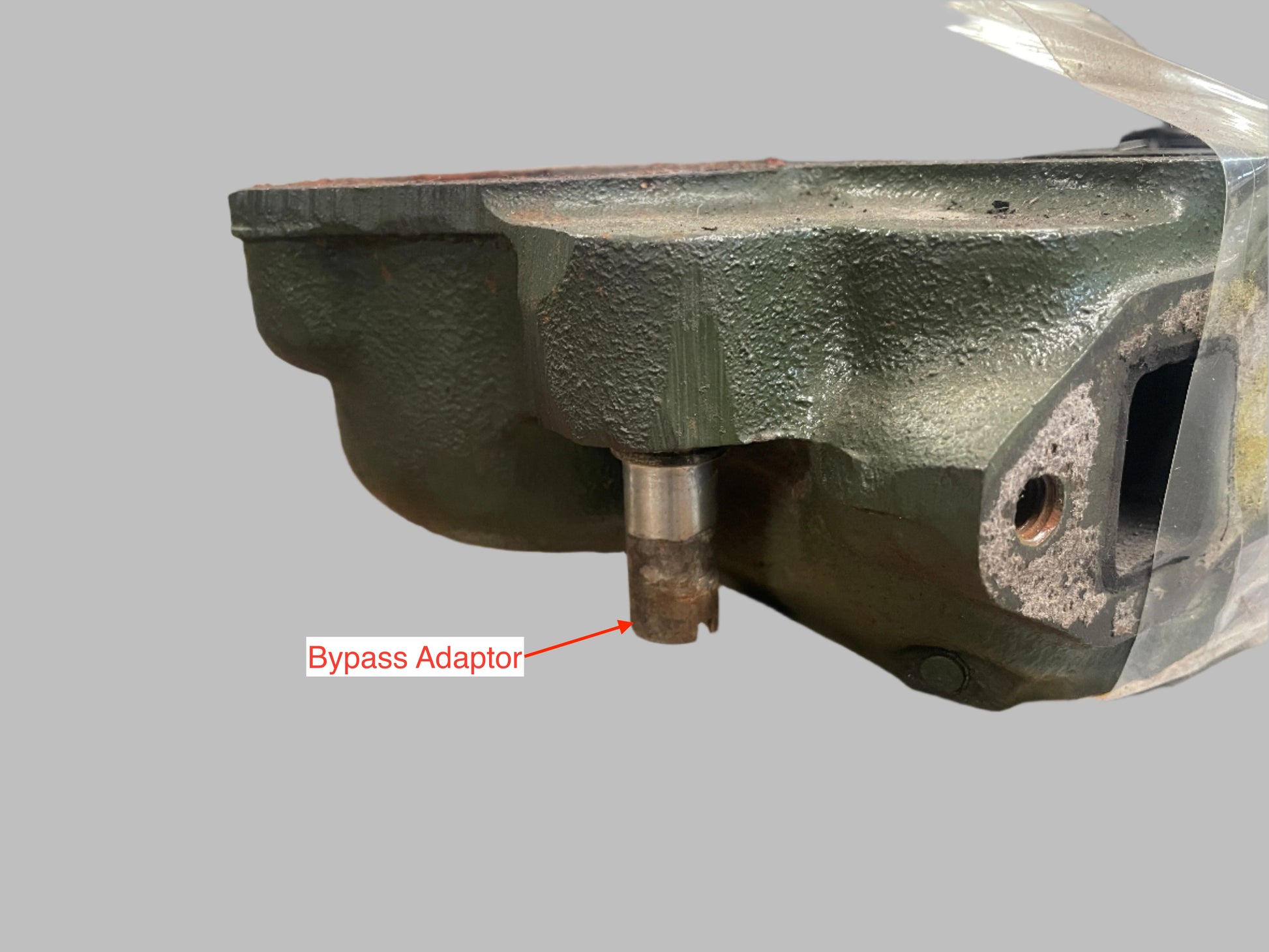 This bypass adapter screws into your head near the thermostat housing, facing downward towards your water pump. The (usually corrugated) bypass hose connects to this fitting and the water pump.