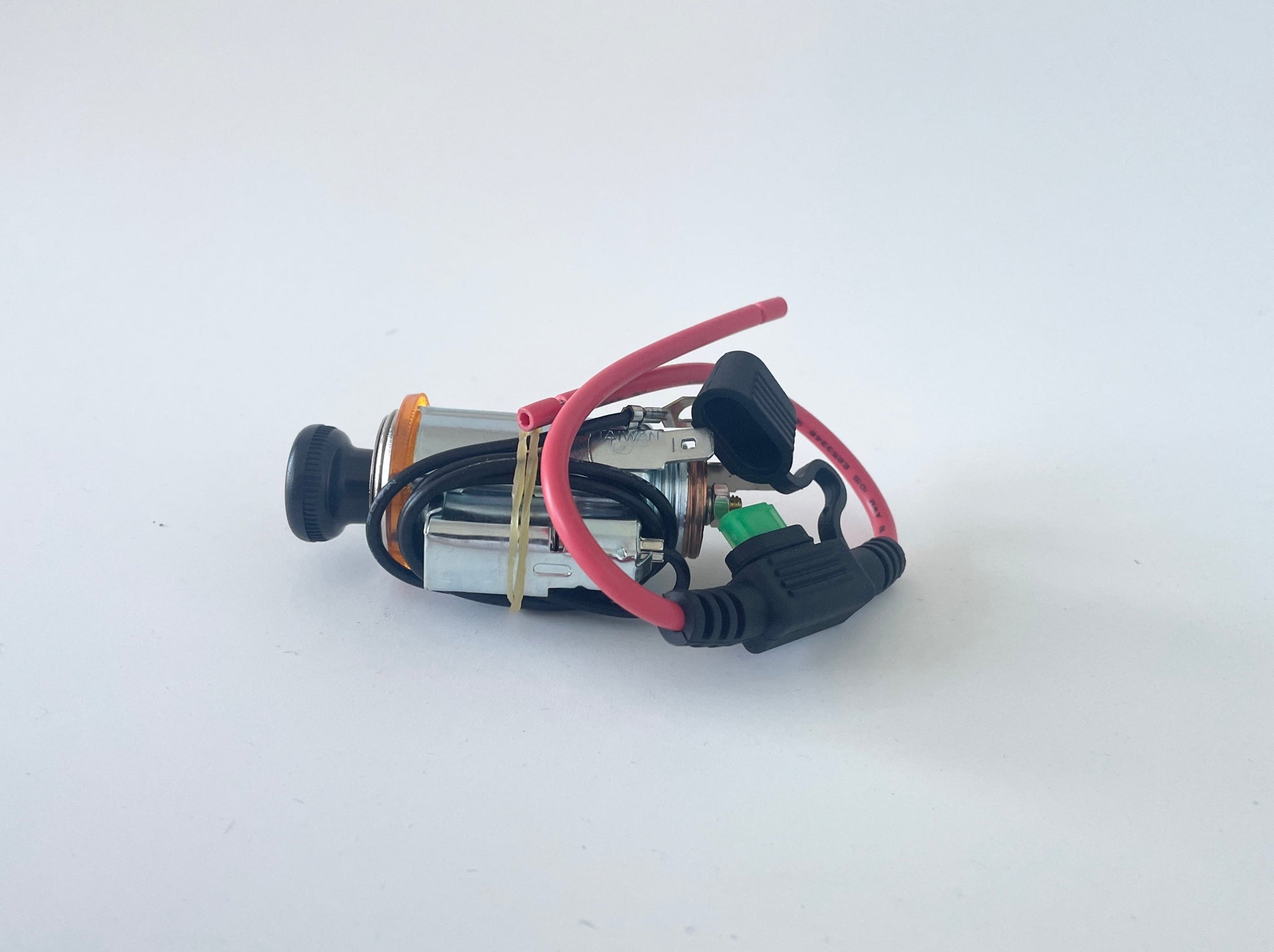 Most of our clients do not use their washer pumps-few want to squirt blue water all over their windshield and make a mess. Instead, a cigarette lighter is a practical choice, as it fits perfectly into the dashboard hole former occupied by the washer pump. This lighter comes with an inline fuse, and you can use these to charge your phone or run your GPS.