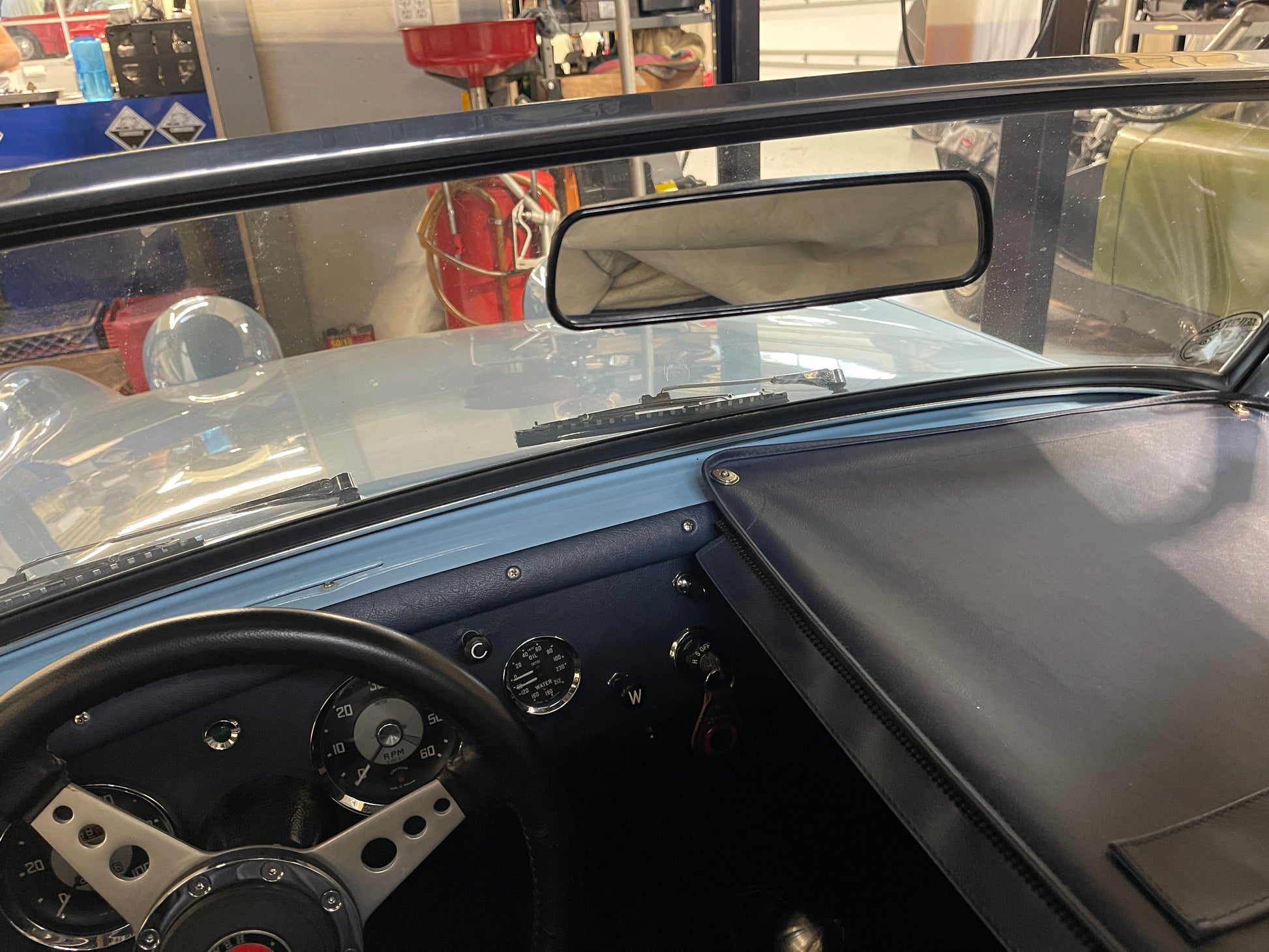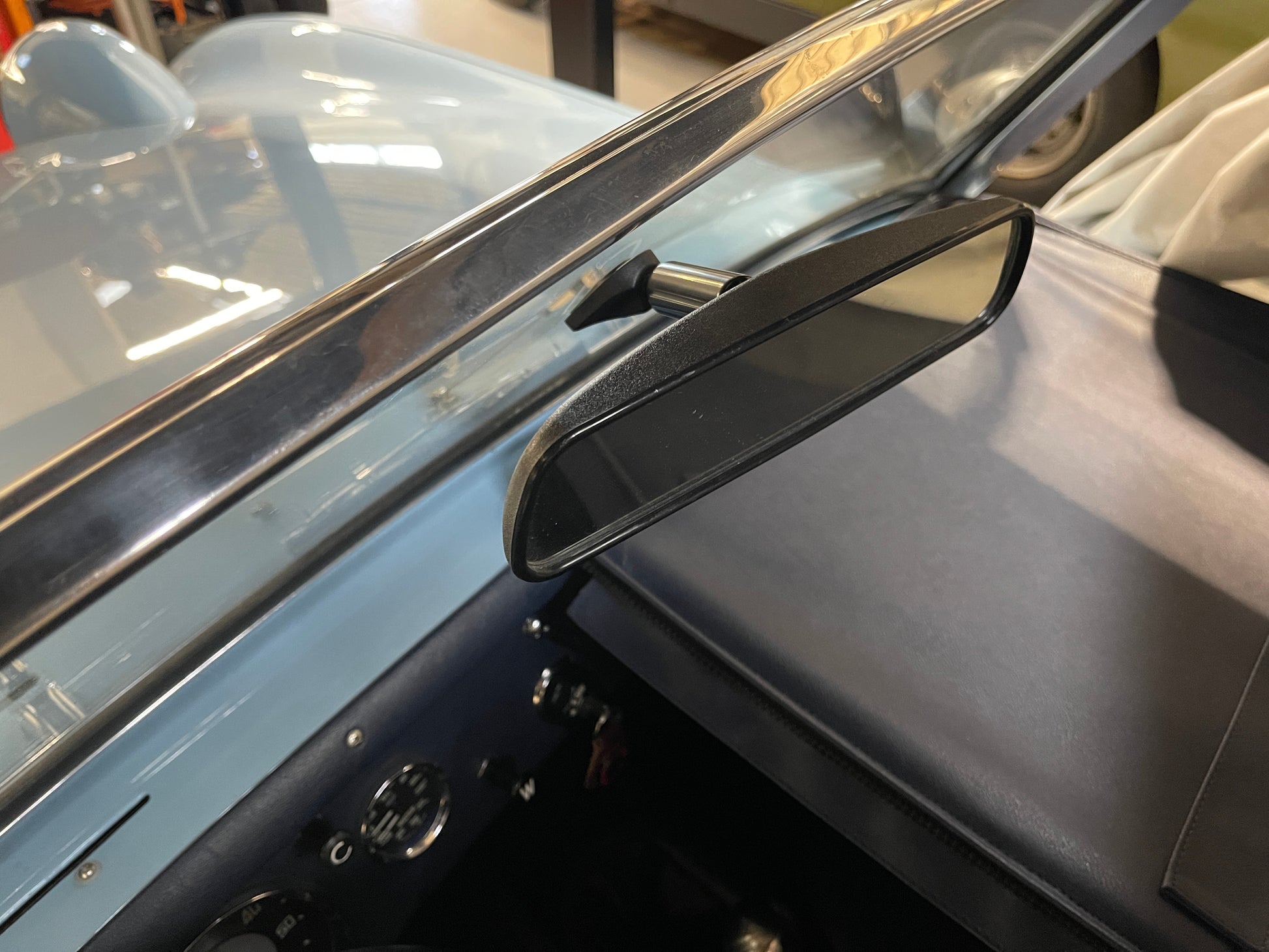 One of my favorite features on this Bugeye the egg is the day night mirror. It’s funny for me to note that on this near perfect 1275 five speed wonderfully modified sprite, the one thing that stands out to me is that this is the only Bugeye I have ever driven with a day night mirror. As my eyes get more intolerant of xenon retina melting SUV lights shooting in my face, this little mirror is a dream. Plus, this elevated windshield position makes rearward visibility far superior to the normal Bugeye dashboard mount. Thus we set out to find a great stick on windshield mirror for all Bugeyes, so that the egg is not the only one thusly equipped. We’ve found a somewhat vintage (70s?) reproduction mirror with the day night feature, which we think is one of the nicest things you can do for your bugeye, and your eyes.