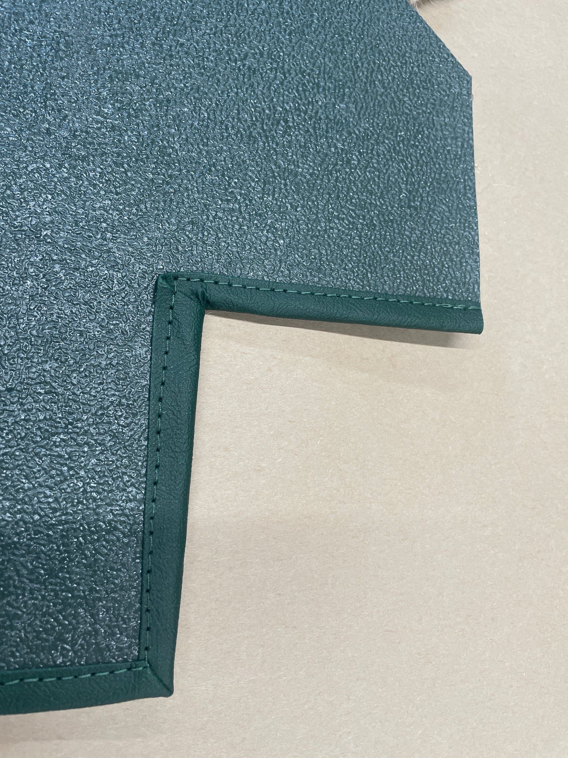 A heel pad is also available as an option for the driver's footwell, and these are available in rubber or deluxe wool sisal. Color combinations are extensive, each kit is sewn to order. These kits traditionally come with matching thread (red hardura red thread, etc), but custom color threads are available for an additional fee by clicking here.