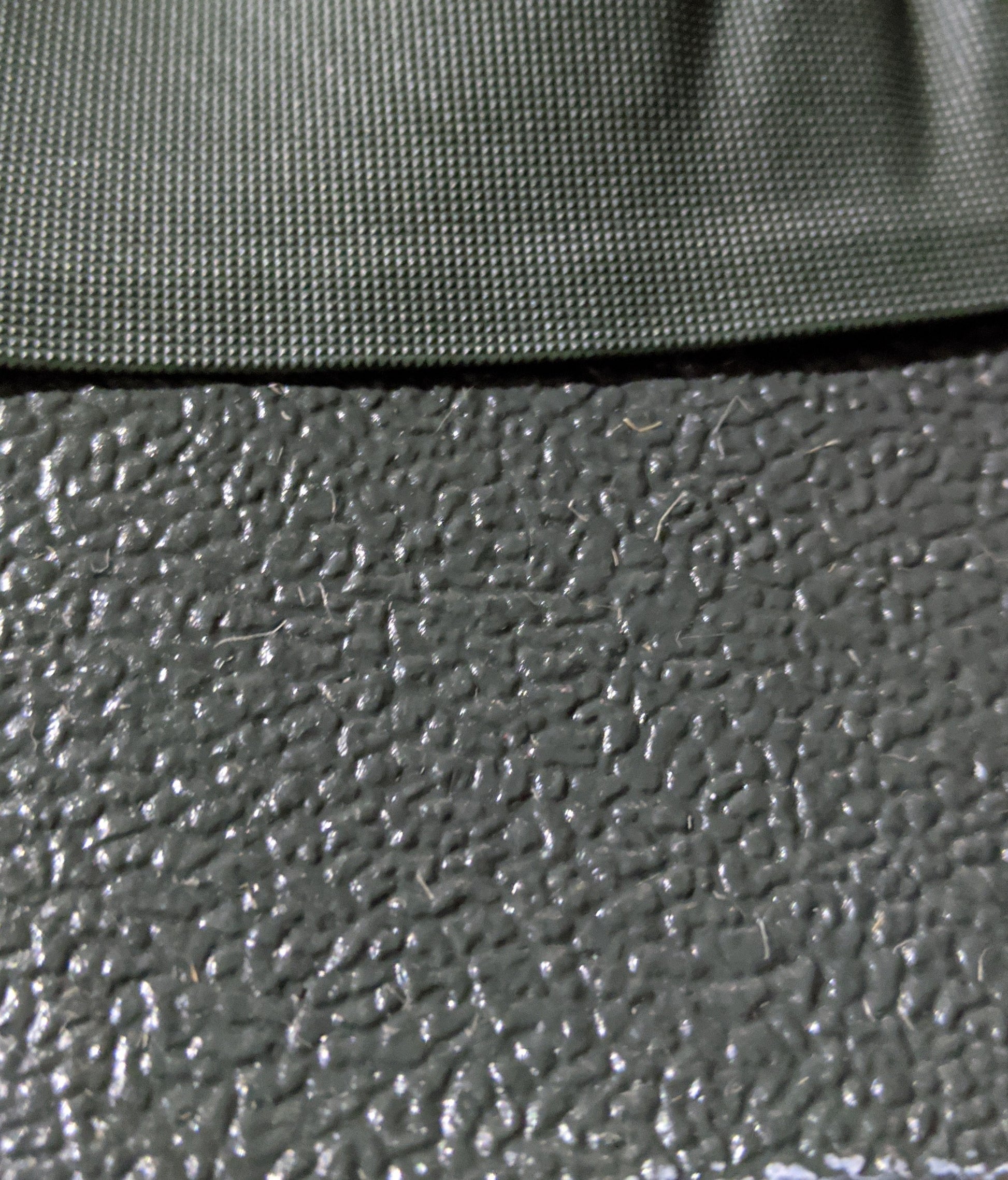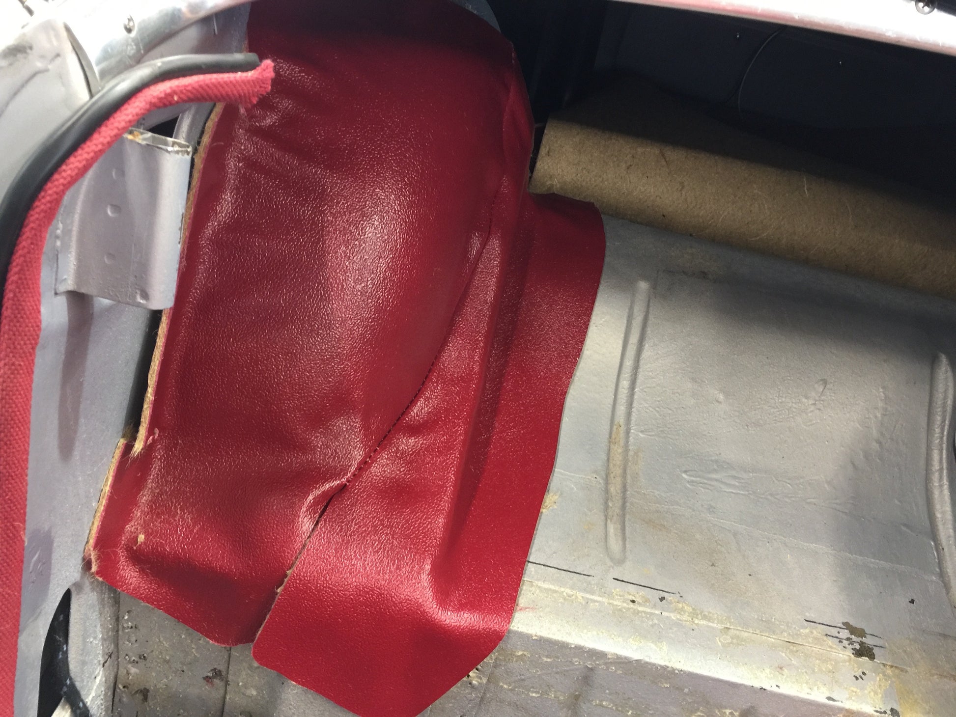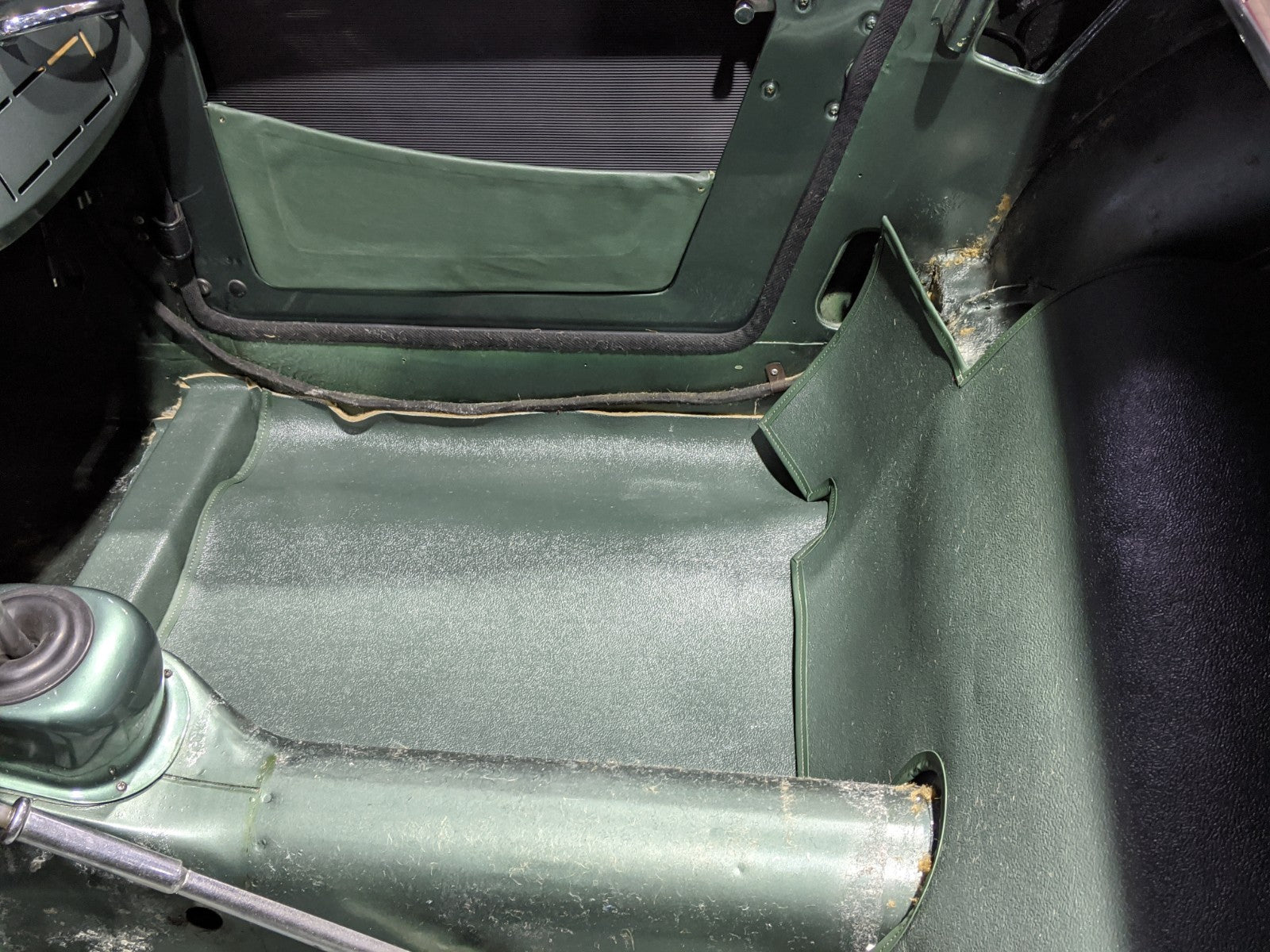 For years we have tried to develop a practical non-carpet solution for Bugeye Sprite floor covering. The original cars came with thin rubber mats which did not last. They were thin and inexpensive, and have proven difficult to reproduce. But the trunk mats were made of a rubberized matting that is still available, and we have formed and stitched an elegant yet authentic extension of those rear mats. Now, you can cover your entire Bugeye floor in a non-carpet material that looks correct. It's durable, lined with horsehair for sound deadening and it also looks more appropriate in a Bugeye than carpet. Carpet is nice, we've been selling our own carpet sets for years. But this new material looks to me like what a Sprite should have on it's floors. Carpet has been widely accepted as the standard since no one was able to make a rubber mat that was accurate. Now we have a great new alternative. I love it so much, I have built it into my personal car (that's the green set you see in the pictures). I think you will feel the same way and want to add it to yours!
