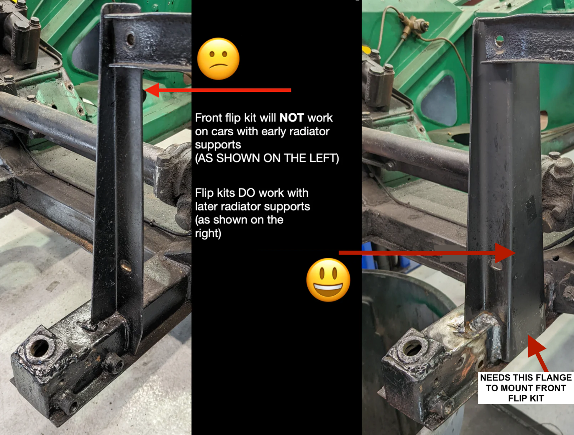 We recommend installing X bracing in the bonnet when doing a front flip kit. This bracing helps increase torsional rigidity on the nose while flipping it. We sell the X bracing here, which will come as pre-cut and shaped rods to fit in your bonnet, then you must weld them into place.