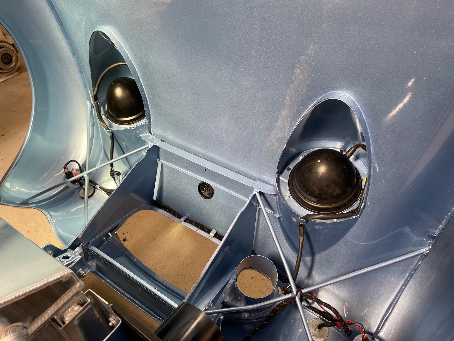 NOTE: We had a customer ask us about the effect the front flip kit has on the fresh air ducting for the heater. This will be completely unaffected by the flip-forward kit and no modifications need to be done in order to employ your fresh air hose for the heater. See photos for an example.