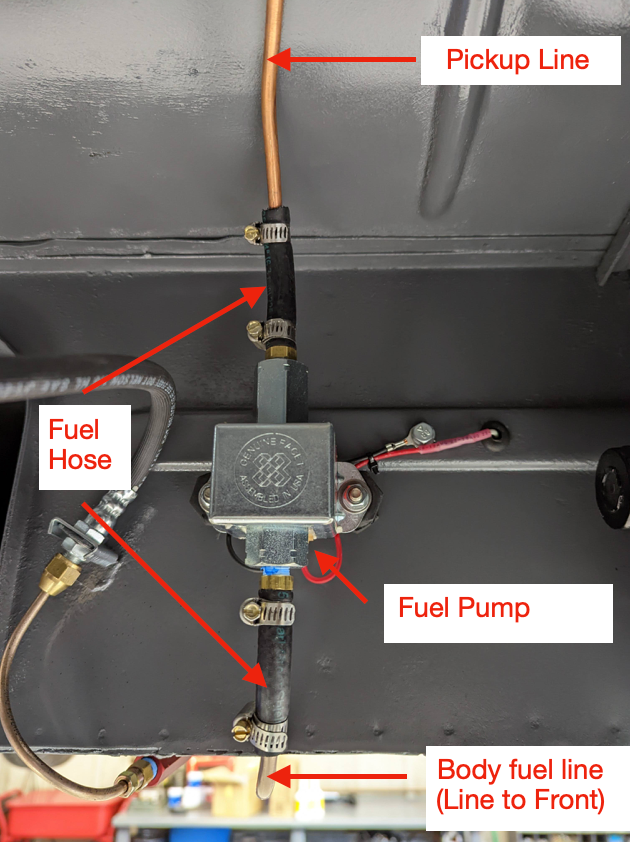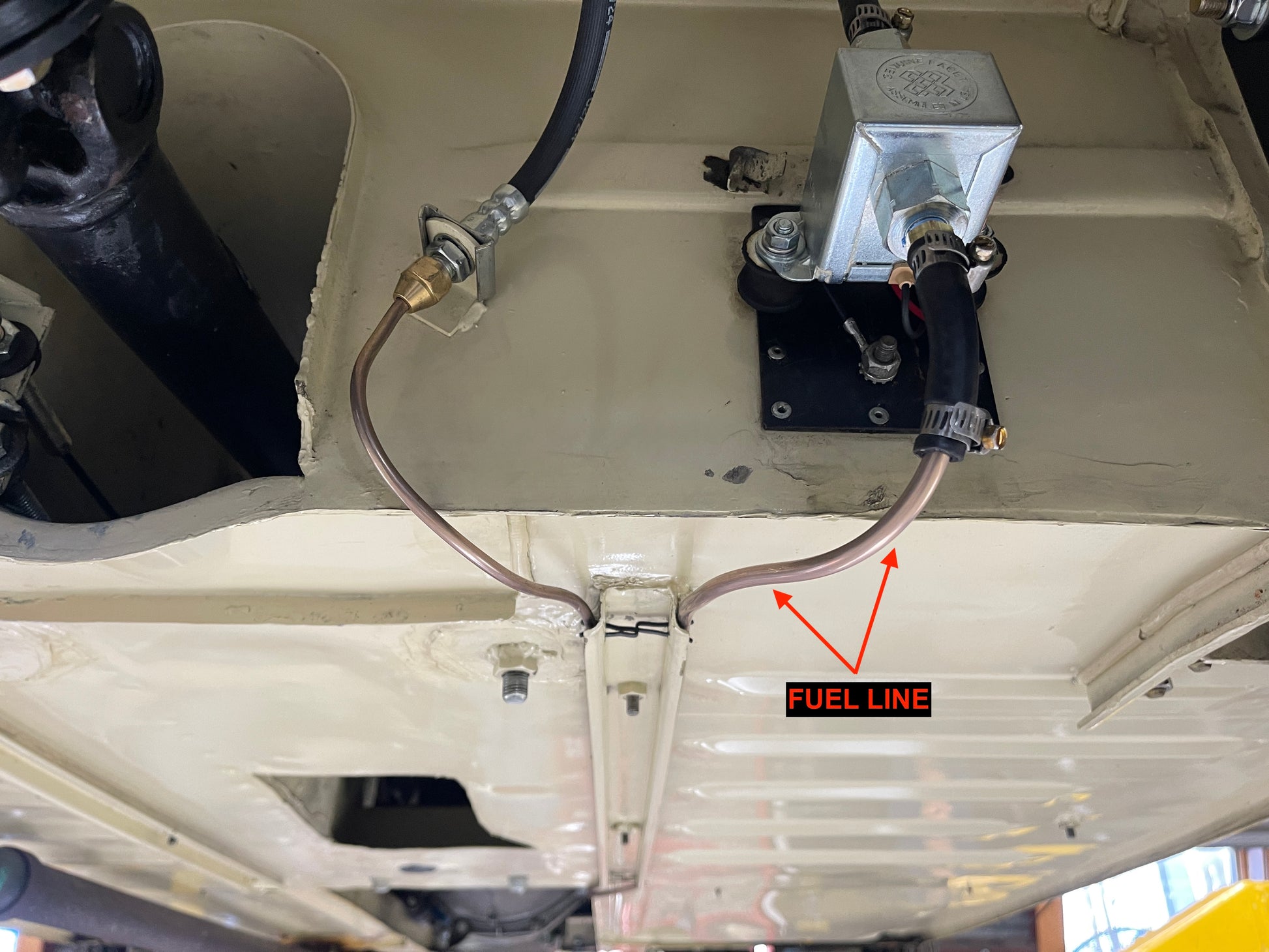 Our fuel pump kit eliminates these ills, and has everything you need to mount the pump and go electric. We use a solid state pump without points and have never had one fail on the cars we prepare. We recommend mounting it at the back of the car on the passenger side bulkhead. This puts the pump out of the way and close to the tank.
