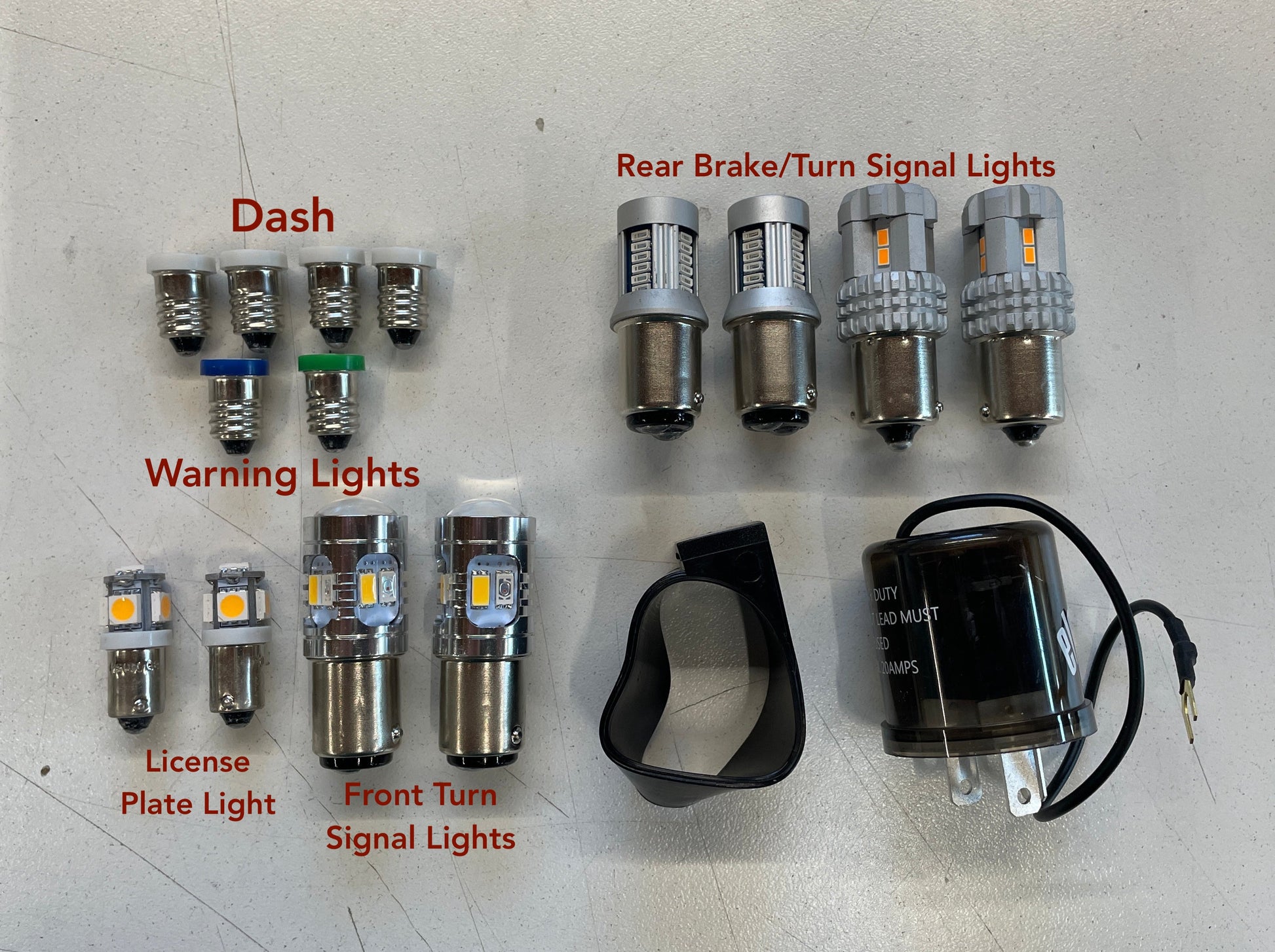 One of the drawbacks of having a positive ground car is many electrical components or accessories will not work with them, including LED bulbs. Until now! We just received an LED bulb kit, which includes bulbs for front and rear marker/signal bulbs, as well as LED's for the dash. It also comes with an updated flasher module to keep the power flowing correctly!