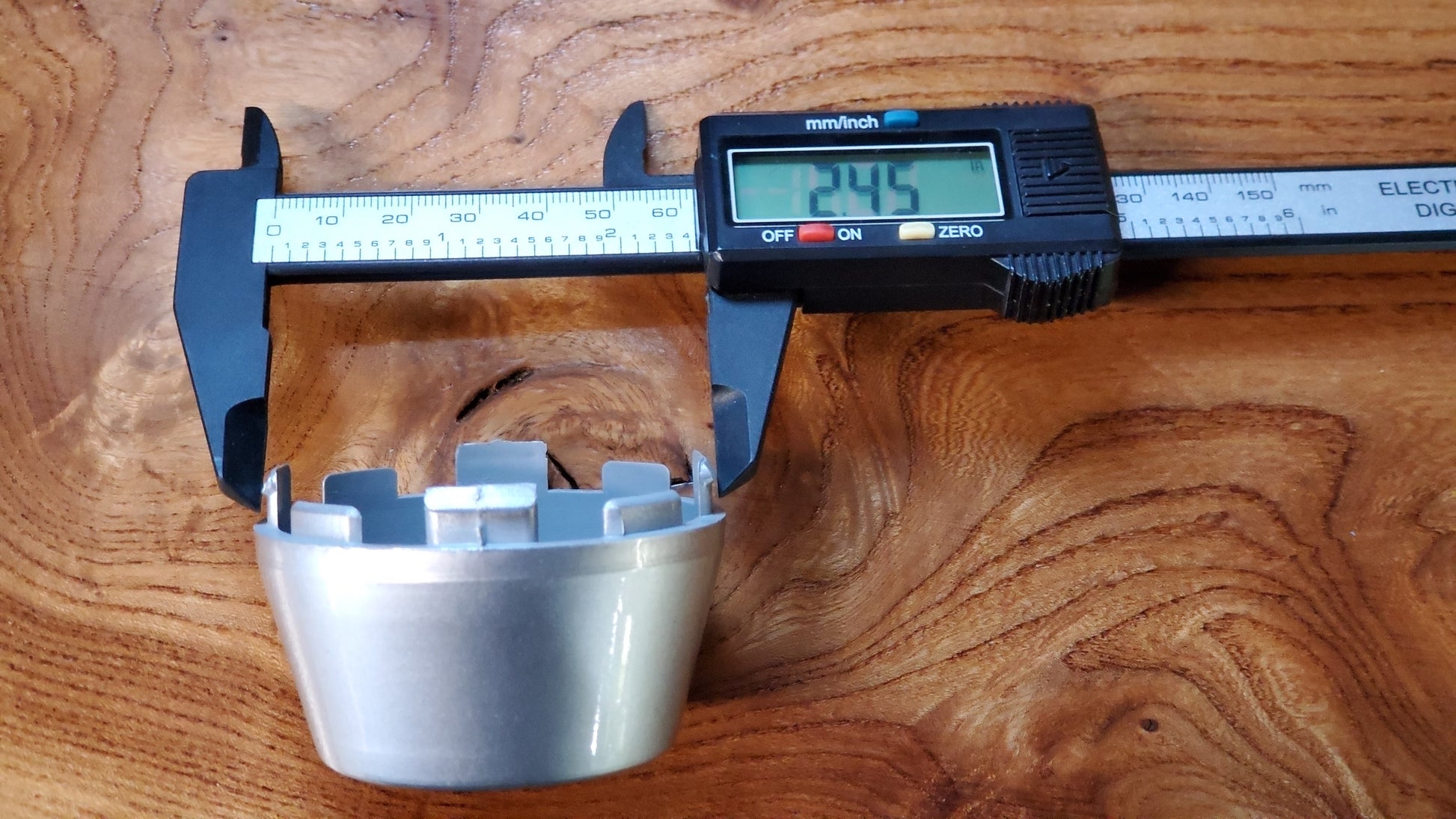 This plastic cap measures 2 1/2" base diameter OD (2.25" ID), 1 7/8" top diameter, 1 1/4" high (plus retainer tabs).