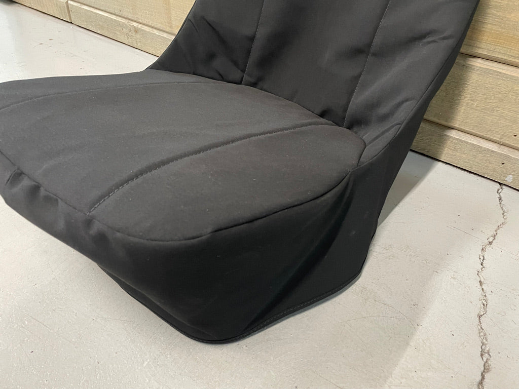 We are excited to offer these new seat covers for your Bugeye! They are made to tough “Sunbrella" fabric to protect your seat from sun, sand, dirt and dogs. For this car in particular, the owner breeds Labrador retrievers, so the cover will keep sharp claws from damaging the immaculate vinyl underneath.