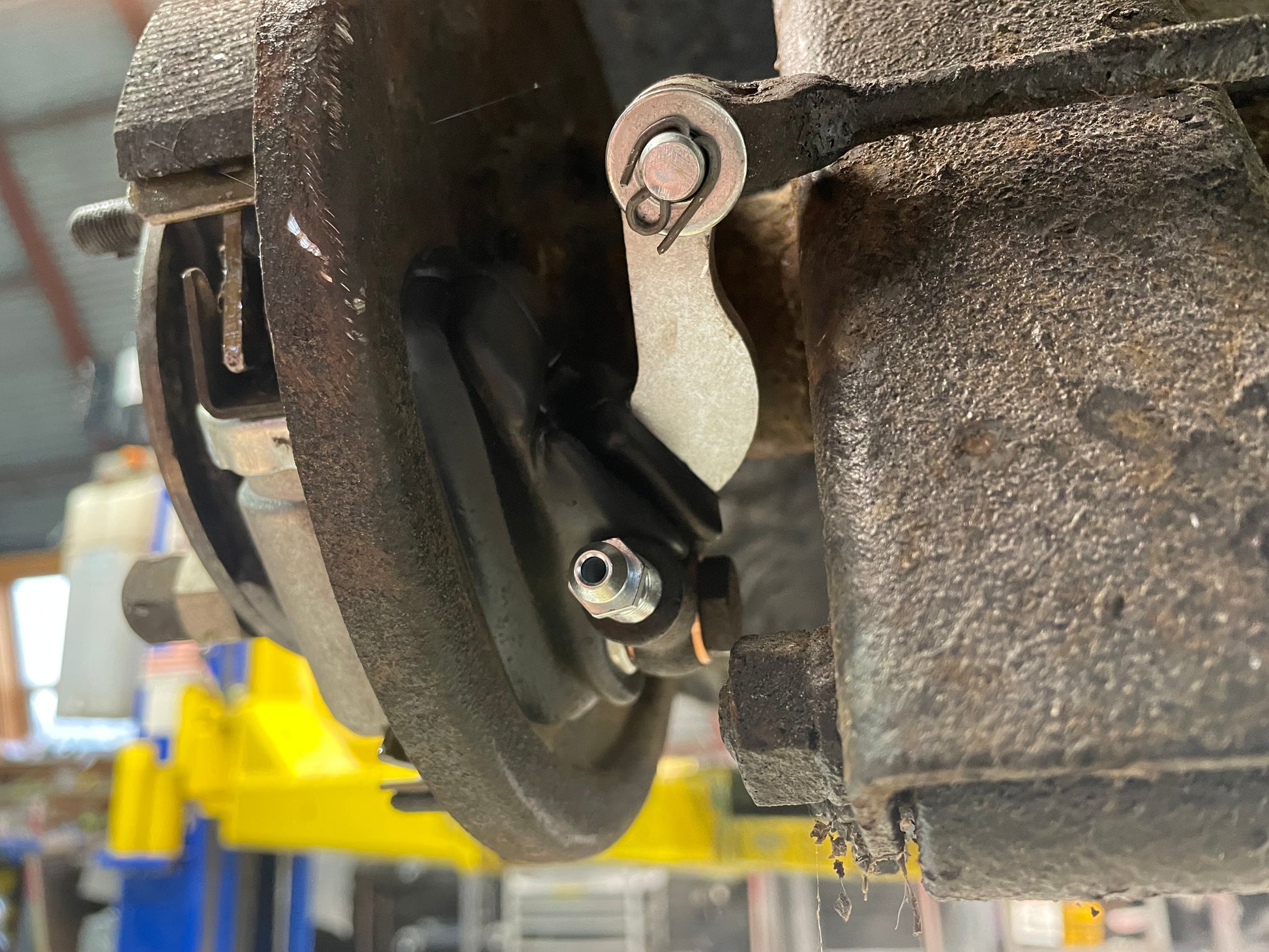 When installing these wheel cylinders, it's easy to trap air inside them. The piston pushes out when the e-brake small lever on the cylinder itself is actuated. If this is not done during installation, air can become trapped in the small cavity, thus giving you a notoriously squishy pedal. Be sure to open the hydraulic system and physically squeeze the cylinder together to get the air trapped in that small pocket out.