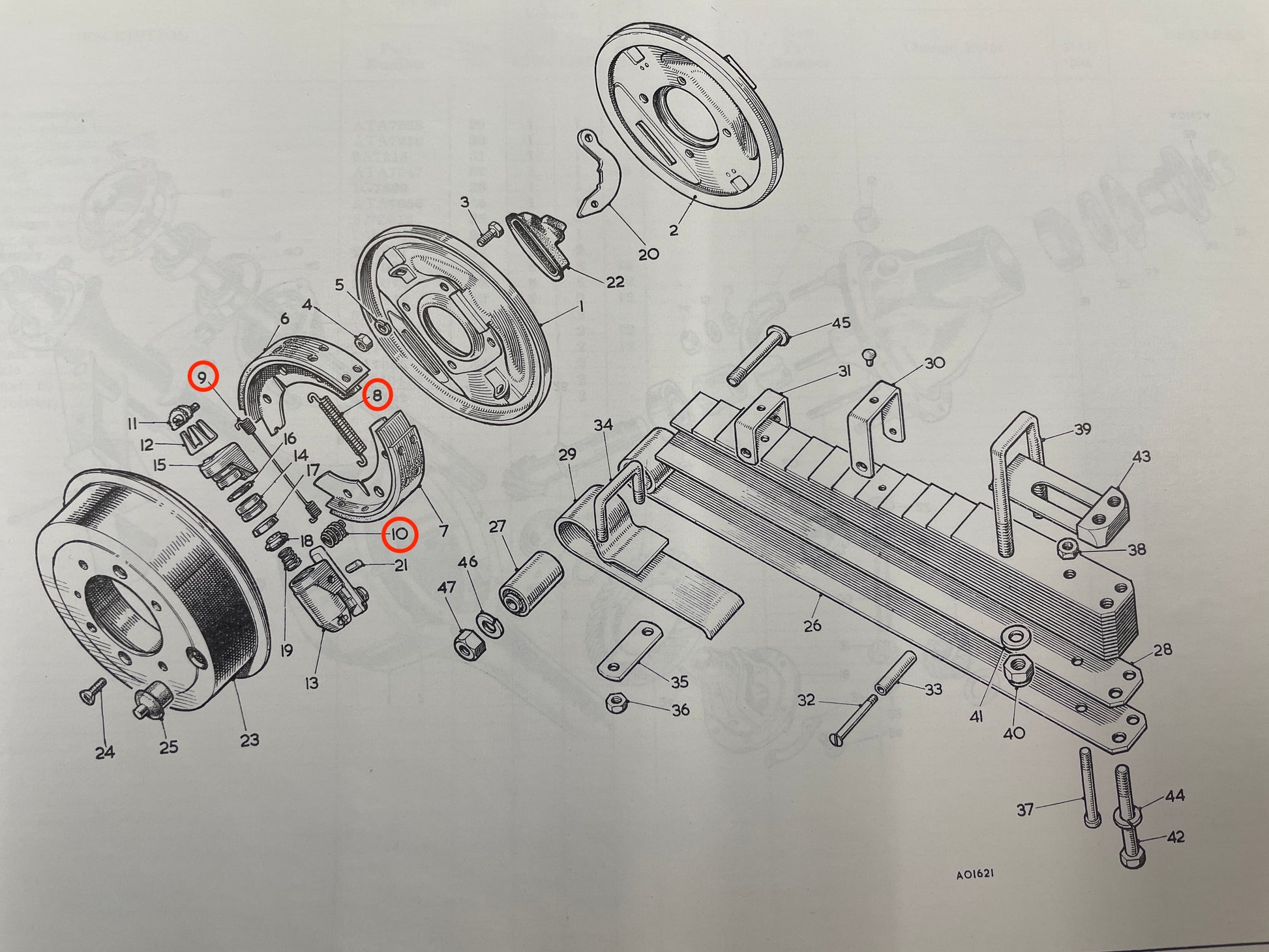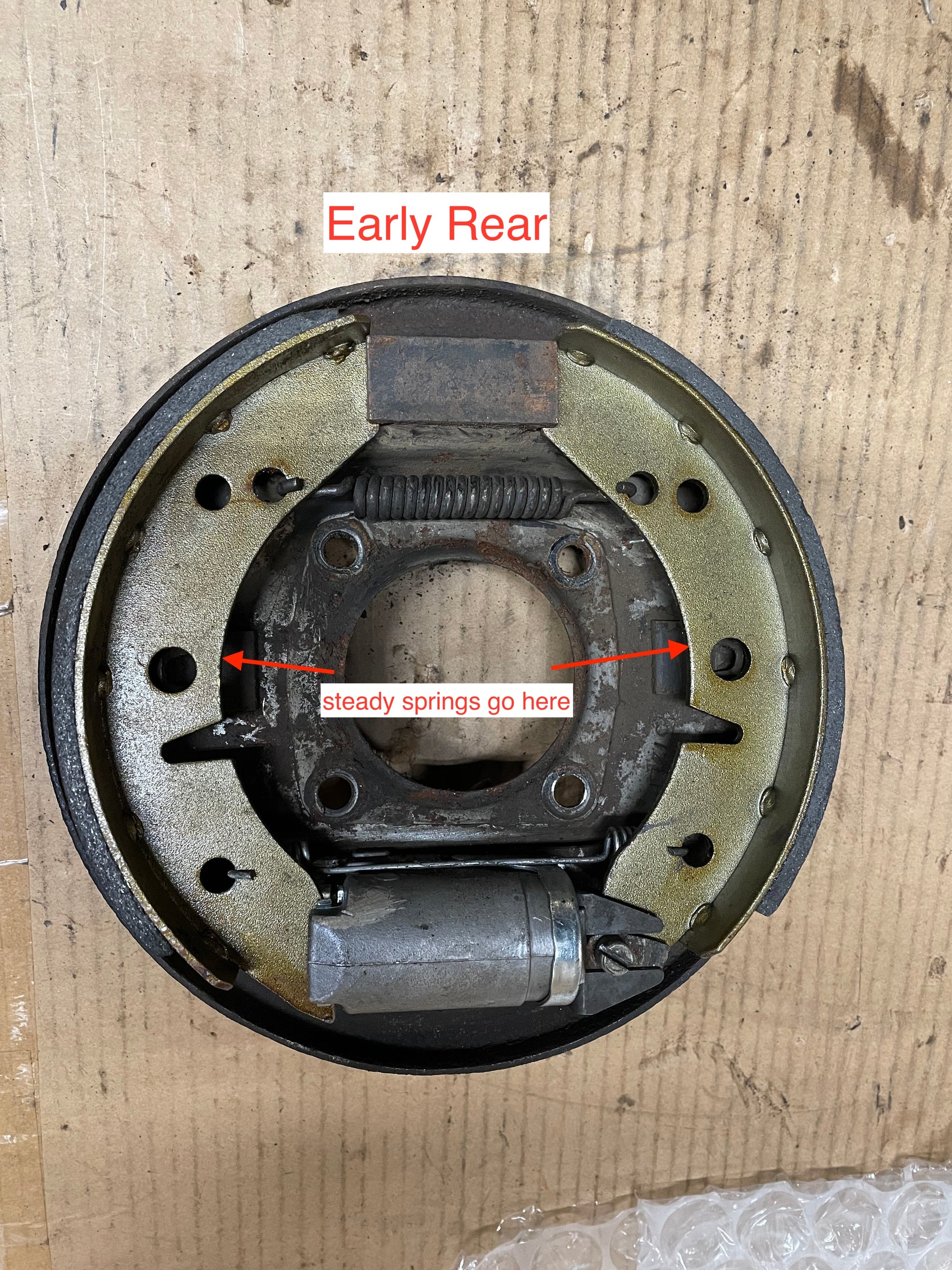 If you are restoring your Sprite or trying to get your rear brakes to work properly, get a fresh set of brake springs. These hold your shoes properly in alignment and the steady springs are mandatory for proper braking (and they are often missing).