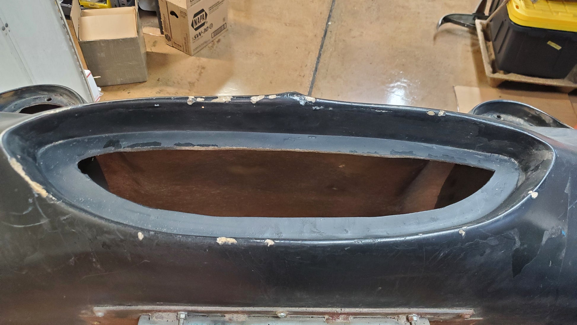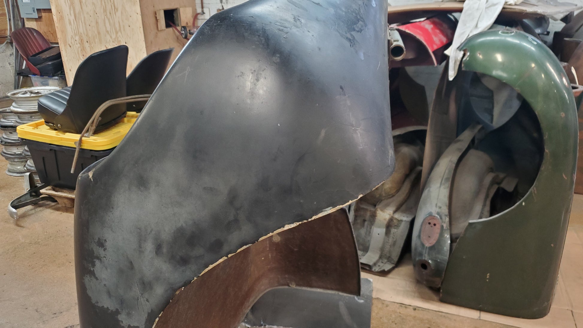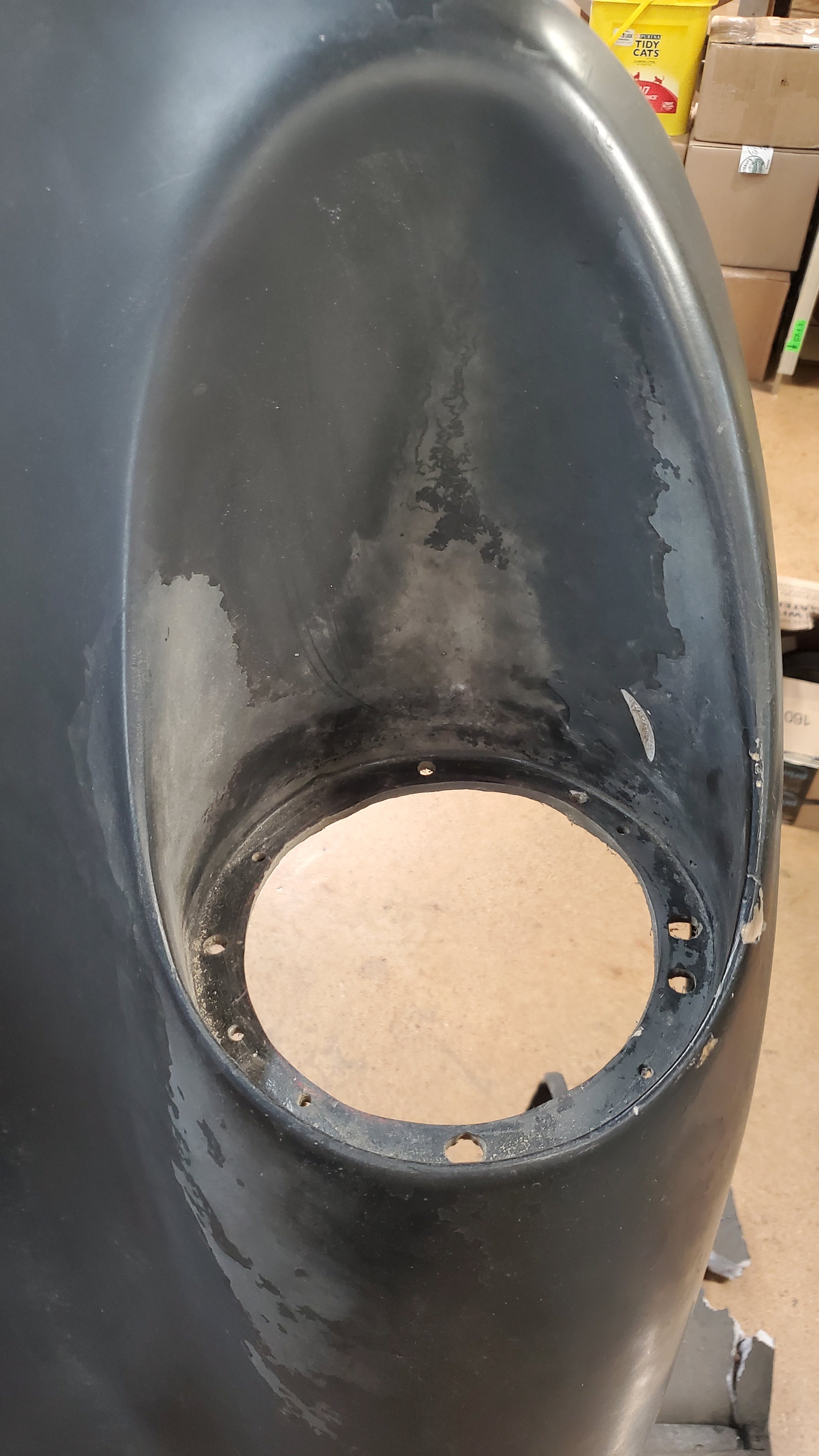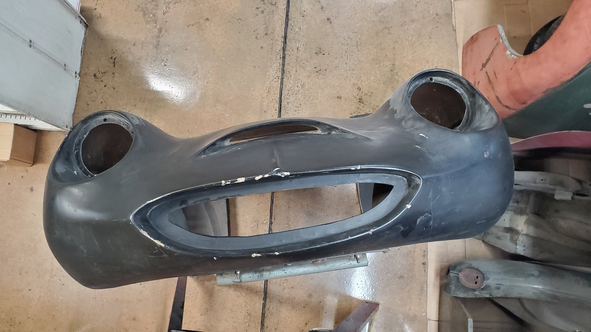 There have been many non-stock fiberglass alternatives to the original steel Bugeye Sprite nose. This one was made by Ashley in the 60s and is a rare original design.
