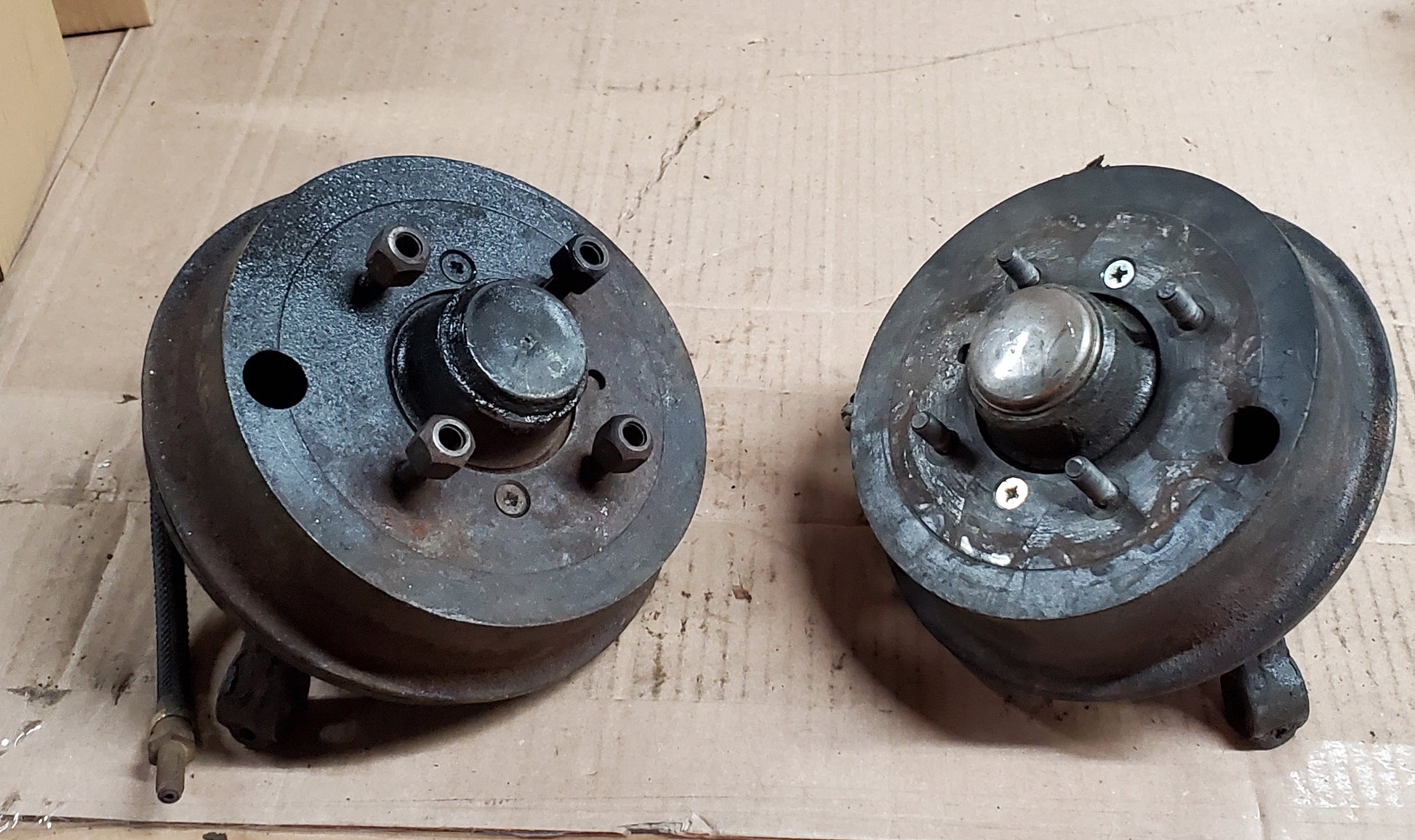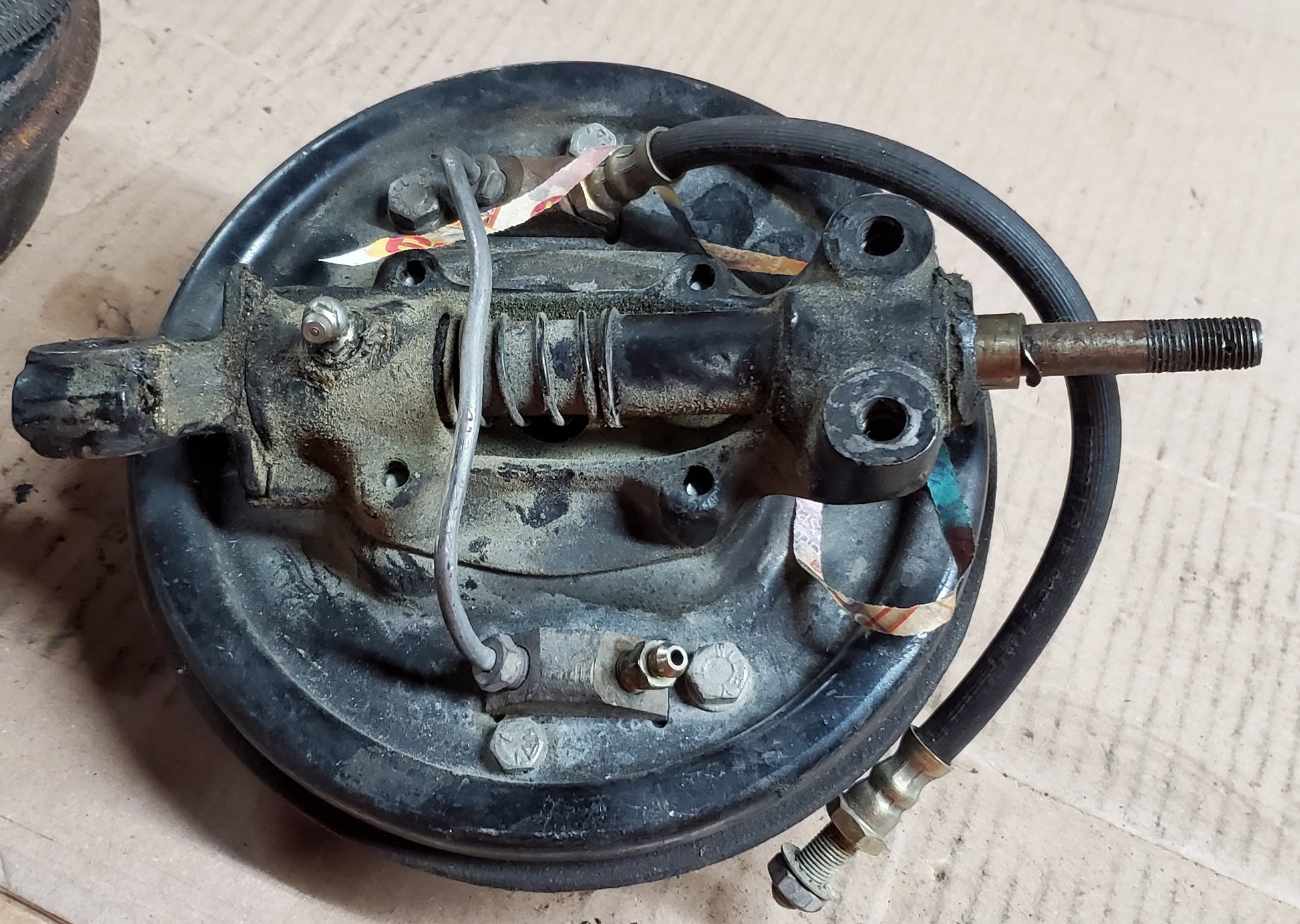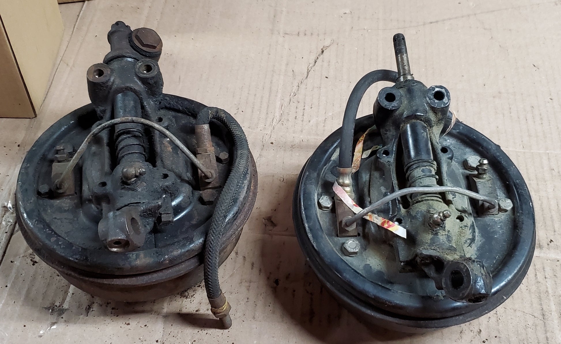Looking for used front spindles, wheel hubs, and brake assemblies to rebuild? We have a substantial quantity of these loaded brake/wheel hub assembly cores in our parts inventory. Oftentimes, we remove these knuckles for front disc brake conversions, as the disc brake cars use different king pins. As such, some of the spindles may be usable as-is, but due to their age and potential for excessive king pin play and wear, we highly recommend rebuilding these knuckles and replacing the king pins and bushings before use, as well as replacing the wheel bearings and rebuilding the brakes. Most of these knuckles are complete from dust cap to king pin, but some of them are missing components, such as king pins, pivots, castle nuts, drums, dust caps, etc. These are being sold as-is.