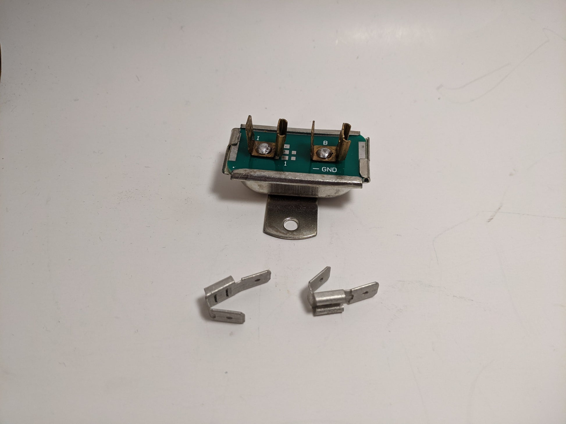 This voltage stabilizer is used on later style fuel or temperature gauges when installed in a Bugeye so the gauge gets fed an accurate, steady voltage.