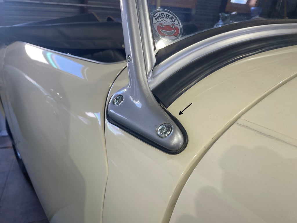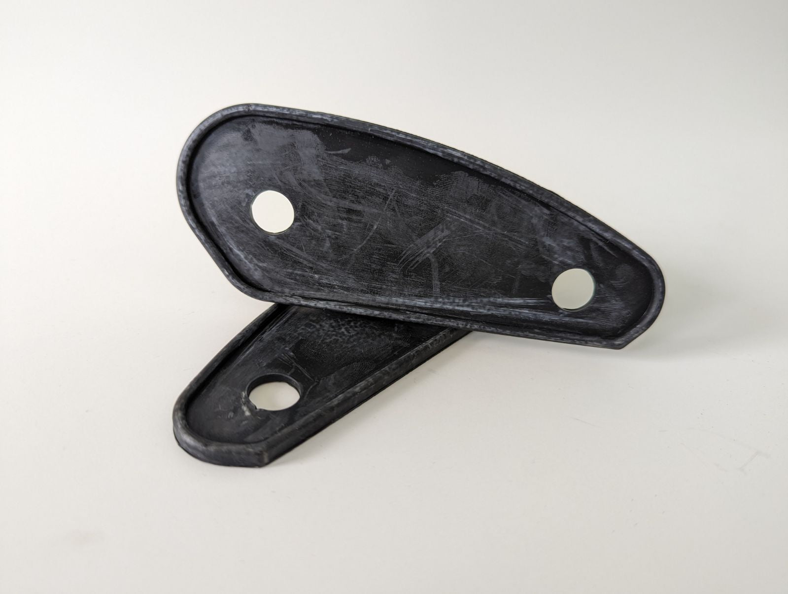 This is a set of left and right rubber post pads for your Bugeye Sprite windshield. The rubber on the edges crack over time, so it's always nice to replace these to make your windshield to body union look its best.