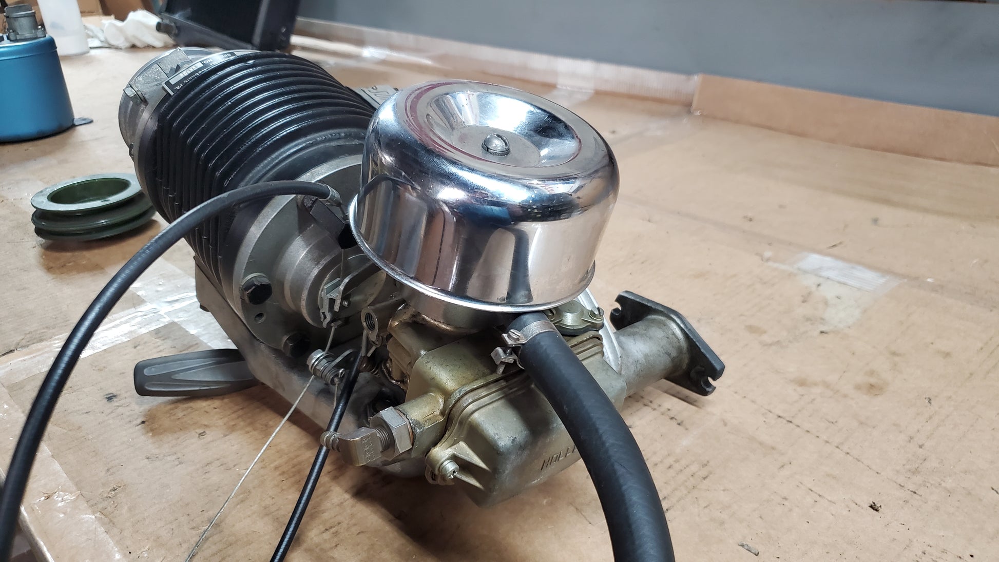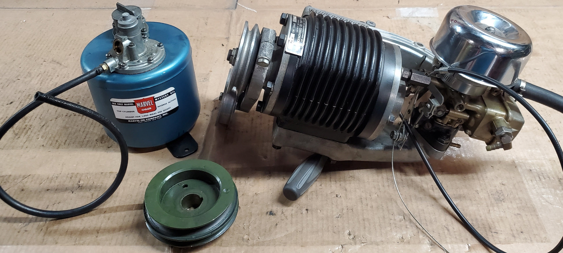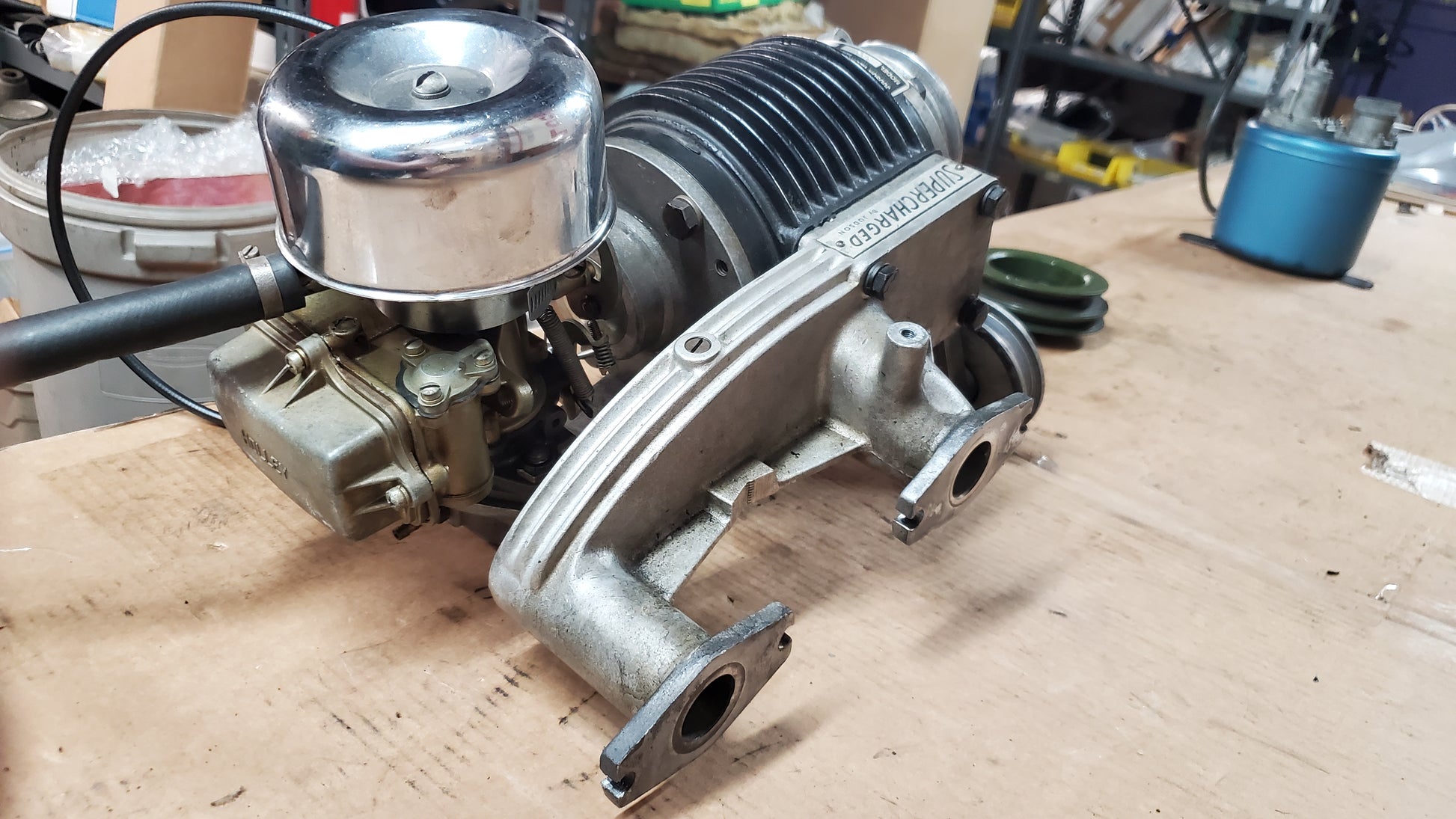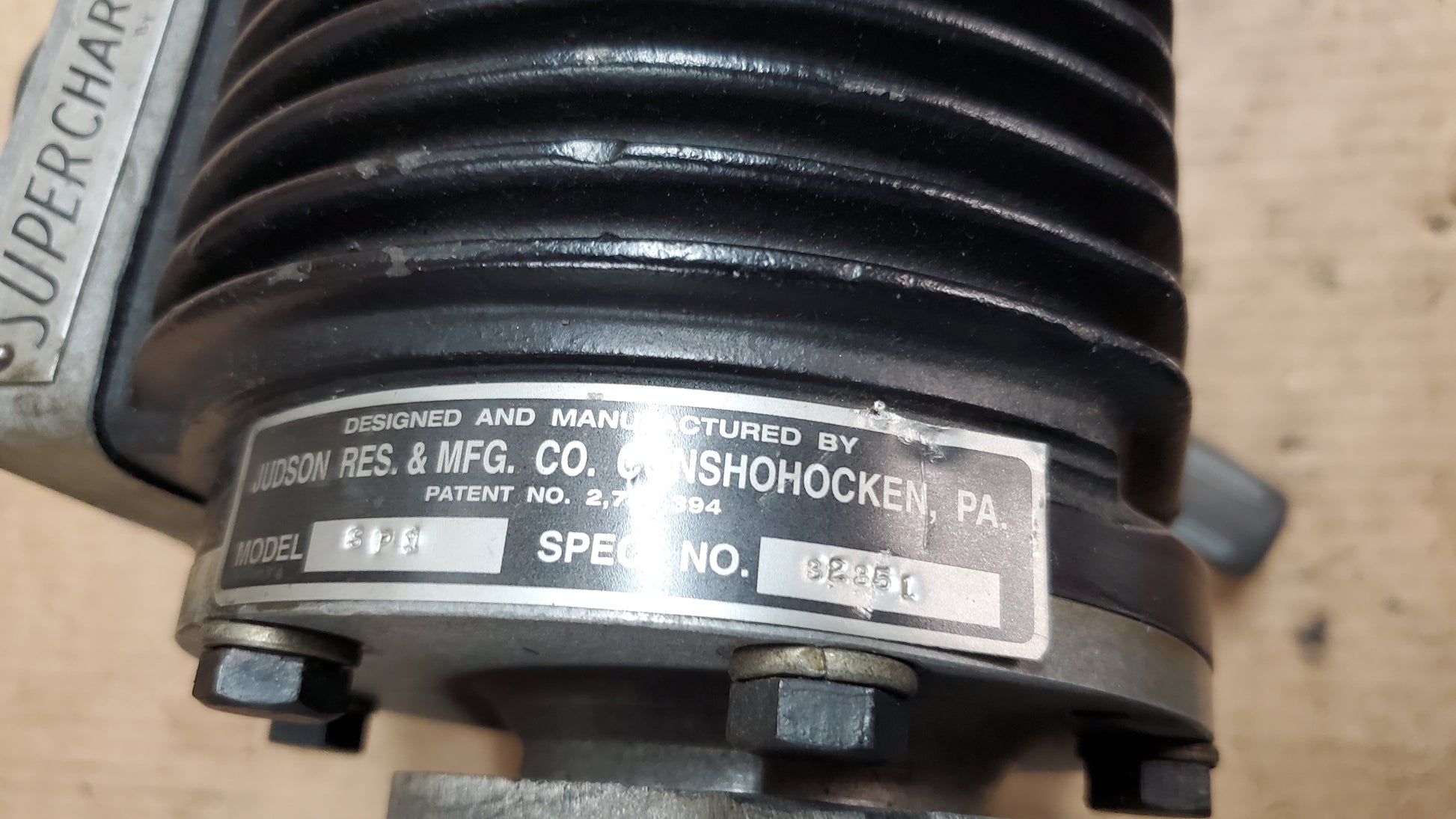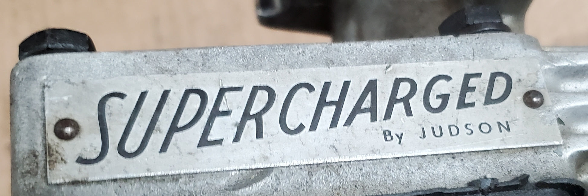 For sale we have this cool vintage Judson Supercharger we removed from an Austin Healey Sprite in favor of a more conventional, naturally aspirated setup. This was operational when removed and features a Holley carburetor and Marvel remote oil reservoir. Included are the supercharger with carb, air cleaner assembly, Marvel remote oil reservoir, and special double-row crankshaft pulley. Condition is as shown. A great vintage speed part at a great price!